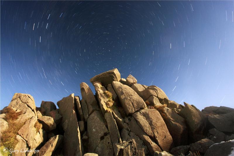 "Whether you believe that the legendary Bluestones were transported from the Preseli Mountains to Stonehenge by ancient man or by a glacier during the last ice age, there is no denying that the source of the Bluestones at Carn Meini is a truly magical place. The outcrop at Carn Meini consists of three to four jagged tors composed of dolerite and spotted dolerite rock, which form part of the 'Fishguard Volcanic Series' created during the Ordovician period some 450 million years ago. This very long exposure was taken by moonlight in sub zero temperatures after a heavy snowfall."