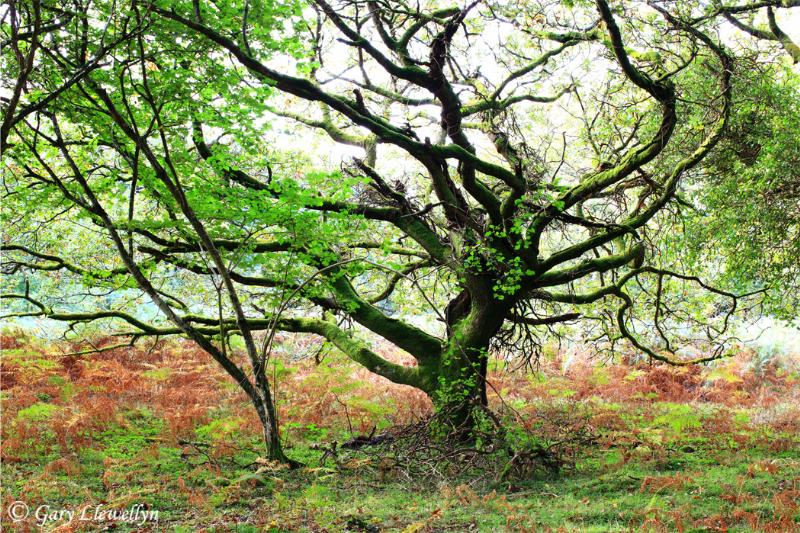 "After the retreat of glaciers 11,500 years ago the barren rocky landscape was gradually colonized by deciduous woodland which reached a peak some 6,000 years ago when even the uplands of Wales were covered. Around 5,000 years ago this extensive forest gradually began to diminish in size due to both natural and human influences. Situated on the edge of the Preseli Mountains, Ty Canol Wood is a rare pocket of ancient woodland which has survived. With gnarled oaks over 800 years old, rocky outcrops carpeted with moss and some 400 species of Lichen it truly is a 'Magical Wood'."