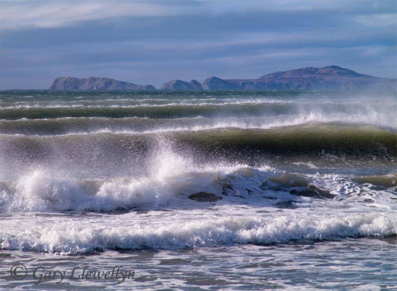 Headland in the background is Ramsey Island with the smaller separate Island of Ynys Bery on the left and the highest peak on Ramsey called Carnllundain visible on the right.